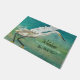 Welcome To Our Beach House Shorebird Art Doormat. Gorgeous coastal egret shorebird painting of snowy egret on water. This art has a unique and rustic distressed faux wood background giving it a weathered coastal beach style. Perfect for the cottage, lakeside or beach home. Accent your beach home or vacation rental property using this doormat upgrade décor. Easy to personalise with your family or rental property name. Art from Jenn's Emporium.