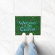 Welcome to Our Chateau Blue Letters Green Door Mat