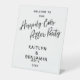 In this sign, I've used a casual, modern, handwritten font to create a graphic typography overlay reading "Happily Ever After Party". Fill in the template blanks with your details to personalise the design. All layers were left unlocked so you can also click to further customise and re-position text or even change sizes or fonts. The background colour was left white but this, too, is editable; change it to one of your wedding colours if you prefer. Please do not hesitate to reach out for assistance with customisation, or if you have special requests.
