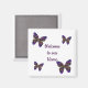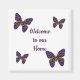 House and room rentals are becoming more and more popular and competitive. Set your rental apart from others with this appreciation magnet. Provide your guests with a daily kitchen reminder or a keepsake to take home with them. The bright and modern butterflies flutter around the centre text. "Welcome to Our Home" can quickly and easily be customised to suit your needs.