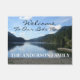 A great gift for newlyweds or new homeowners, our personalised lake house welcome doormat in a beautiful design with mountains surrounding a lake. There's a beautiful blue sky. Personalise "welcome to our lake house" in modern, elegant handwritten script. Personalise with your family name too. Check out the many other designs we have.