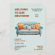 Celebrate your new home with style! Our charming housewarming party invitation features a cosy image of a light blue sofa adorned with light brown throw pillows. Perfect for inviting friends and family to share in your joy as you settle into your new space. Customise your details and make your event unforgettable with this inviting design!