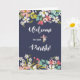 Welcome the new parishioner with this joyful card. Brightly coloured flowers stand out against the navy blue background. A cross is in the middle with a modern font. Perfect card to let them know that you are happy they have joined your parish.