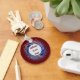 This eye catching keychain features a blue and grey spiral pattern creating the colour and backdrop for your welcome message. The circular frame in the centre provides a solid background for the text. "Welcome to our team" can quickly and easily be personalised to suit your needs. The solid deep red background colour may also be customised if you desire.