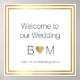Romantic and personalised wedding-poster. Add bride and groom initials to the template to create a nice design with faux gold border and love heart, with the text 'Welcome to the wedding of (couple initials). Thank you for celebrating with us'... in a thin and elegant font-style