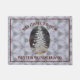 Welcome the winter season and your guests with seasonal doormat. This design features a soft blue, grey and white snowflake pattern background. In the centre there is a digital photo of a white Christmas tree. The bright maroon text reads "WELCOME TO OUR WINTER WONDERLAND". At the edge there's a maroon ruled border.