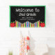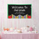 This Welcome to second grade banner offers a bold and colourful design. The banner features red apples and coloured pencils and custom text for any grade.