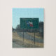 A jigsaw puzzle featuring a photo of the welcome to Texas sign.