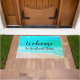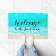 A custom welcome mat featuring a photo of a beautiful turquoise water beach with the words Welcome to the Beach House in black so it really stands out. Perfect for your beach house or rental property,