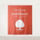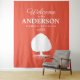 Welcome to the family reunion party photo backdrop. Elegant typography template for surname and date. Orange or custom background colours. Great for making professional group photo's and selfies. Personalised wall decor available in small and big sizes. Personalised decoration for family gathering, meeting, celebration etc. Tree roots silhouette. Upload your own logo or crest optionally.
