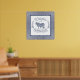 Stylish square wall print features centre "Welcome to the Farmhouse" text with farm animal silhouettes and a blue gingham background