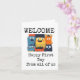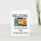Welcome, happy first day, from all of us, cute, funny cartoon monsters.