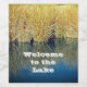 Welcome your lake house guests with this simple to use wine bottle label featuring tall brown and green lake grass on the shoreline reflected in the bright blue water. The words "Welcome to the Lake" appear in the bright blue water in white font. All text may be customised if you desire.