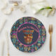 A Bright Tiki Mask Luau Party Paper Plate In Blues And Pinks For A Hawaiian Luau