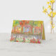 A greeting card to welcome new people into the neighbourhood featuring houses on a tree lined street with a blooming garden along a white picket fence sketched with ink and painted with watercolor. You can edit the text and inside colour to fit your needs.