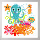 Our Welcome to the Ocean design is cute, fun, and colorful, great for kids who love the ocean and all the sea creatures it has to offer. Features a blue octopus, sea horse, fish, starfish, and crab! Ocean animals theme T-shirts, mugs, bags, cards, wall clocks, keepsakes, pillows, journals, and more!
