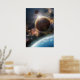Waiting for clearance in geostationary orbit to leave the home planet and explore new worlds in outer space. Personalizable digital artwork by Liz Molnar. Planets, stars, space clouds, lights were made with basic Photoshop effects and brushes, planets' surfaces created from photos.