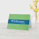 This is rustic White Minimal background with blue badge welcome Greeting card. Welcome your new employees to your team and make them feel appreciated with this cheerful and stylish pattern business employee welcome greeting card. This welcome card for new employees or clients in the company.