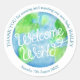 Welcome to the world whimsy watercolor painting of the world than you for coming stickers. Cute blue and green loose world art thank you sticker. Other matching welcome baby items available. © Uniquely painted in watercolor and designed by www.mylittleeden.com