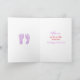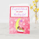 Congratulations on your new baby girl, baby footprints, baby sleeping on the moon red and purple with white stars card for new parents. This baby is drawn with darker skin to represent babies of colour.