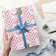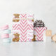 This beautiful personalise wrapping paper is perfect for that new baby girl ! Features a background pattern in a sharp chevron in a dusty rose pink accented with a white art deco style area in white that is graced with a digitally painted teddy bear and pink heart baby rattle and the words "Welcome to the World" you then personalise with the name of your choice!