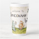 Two cool cats visit Vancouver WA and take a selfie under the Welcome mural. The original art was handmade by Sue Clancy using ink and gouache.