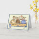This card can be customised as an announcement as well as congratulations on the birth of triplets. Three whimsical folk art bears sitting on top of a sign saying "Welcome Triplets!", which is decorated with a baby bottle and a rattle. A cute design, and don´t forget to buy the matching postage stamps as well!