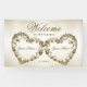 Welcome Wedding Floral Golden Ornate Heart Frames Banner. Unique, beautiful, stylish design. Easy to be personalised. Font style, size and colours can be changed. Matching items available.
