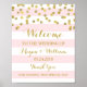Welcome Wedding Sign Pink Stripes Gold Confetti