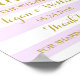 Welcome to Wedding sign poster with custom name and date in light lavender purple and white stripes pattern with gold glitter effect confetti, please note gold is photographic effect only.