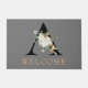 WELCOME White Floral Gold Accents Monogram A Doormat