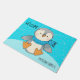Sweet penguin artwork. Patterned blue background. Custom welcome door mat with adjustable text. Options for changes on welcome text and family name. Fast and easy to use template.