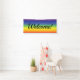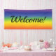 Welcome banner with rainbow colour blend background and script font. Edit text or add more text lines if needed.