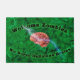 Welcome Zombies, We Serve Delicious Brains text with a brain on a green background to make your home Halloween appropriate.