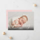Welcoming script baby girl pink photo birth announcement featuring elegant script messages. These sweet elegant birth announcement cards are a perfect way to let everyone know your wonderfully exciting news. Customise the front with your baby photo and name. The reverse features a beautiful script message along with your personal thank you message and birth stats. Designed by Thisisnotme©