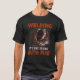 I give wanted to give this a 4 instead of a 5 because these Basic DARK T0shirts run unexpectedly SLIM or Narrow. Which is great if you do not have a potbelly, but I have a paunch. It isn't the shirt's fault that I've got a beer belly. The design and shirt itself is a quality cotton shirt. The color is more of a deep purple, but still a very pretty color. The Basic DARK T-shirts run a bit SLIMMER than the Basic Ts. The neck is a fraction narrower (or seems to be narrower) also. I'm a paunchy middle-aged woman and my neck is 12 inches (31cm) thick and the neckline fell about the same as in the photo of the man, and I had the desire to tug it a bit. So if you're a thick necked man or like loose shirts, be aware these are slimmer shirts. Once I get rid of my lockdown paunch it'll look great. The shirt washed well in cold water with no apparent bleeding. We don't have a dryer, so it hung dry. Did not shrink. Love the colors and the design. The design looks smaller on my shirt than it does on the model on-line. But still, it looks good on the shirt. The printing looks as it does on the model, just the size seems fractionally smaller. Washed garment in cold water, hung dry and design appeared unaffected.