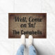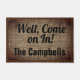 Well, Come on In written in playful script which stands out well on the faux seagrass textured background. Underneat the welcome is the area where you can change the name, written in classic style text. It is a fun and humourous way to greet your visitors.