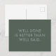 Well Done is Better than Well Said | Khaki Quote Postcard