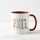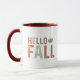 This fall-themed design warmly welcomes the autumn season with the phrase "Hello Fall." The words are arranged in a simple yet visually appealing layout, with "Hello" placed above "Fall." Each letter in the phrase is presented in a bold, blocky font with a slightly distressed texture, giving it a rustic, weathered look that complements the autumnal theme.