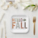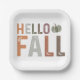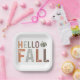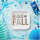 This fall-themed design warmly welcomes the autumn season with the phrase "Hello Fall." The words are arranged in a simple yet visually appealing layout, with "Hello" placed above "Fall." Each letter in the phrase is presented in a bold, blocky font with a slightly distressed texture, giving it a rustic, weathered look that complements the autumnal theme.