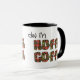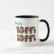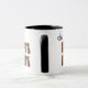 An attractive white ringer mug with a Black Lip and Handle and 'I like coffee' in the Welsh language'. The letters are filled with a Brick Red, Black and Green Egyptian pattern.