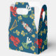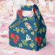 A chic Gable Favor Box, with a pattern of Welsh Emblems, a girl in welsh traditional dress, a red dragon, a bunch of leeks, a harp and a bunch of daffodils. You can easily change the blue background colour if you wish.