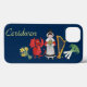 A chic Case-Mate Xtreme case to personalise for an iPhone 6 smartphone, with a row of Welsh Emblems, a girl in welsh traditional dress, a red dragon, a bunch of leeks, a harp and a bunch of daffodils. (You can easily change the blue background if you wish.)
