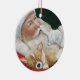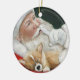 This ornament feautres a reproduction of my original oil painting of a Corgi and Santa.