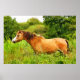 A pretty cute welsh mountain pony grazing in a summer meadow. Watercolor. Wales.