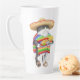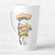 The image on this WENDELITO tall tapered latte mug with a black handle and interior is my original coloured pencil drawing of Wendelito. He's working his shift at the local Mexican restaurant, serving up a special platter of fish tacos and tortilla chips, dressed in his favourite poncho and sombrero. The art repeats around the mug. * Other mugs, and matching products are available in the WENDELITO category of my shop. ** If you'd like to transfer this design to another product type, shape, or size, please check my shop first to see if I have one already done, because I'll have fiddled with it to make the design fit just right and it will save you the bother. Sometimes designs transfer ok, sometimes they don't. Just fyi.