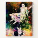 Spooky vintage Alice in Wonderland painting with Cheshire cat and "We're all mad here" quote.