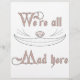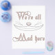 A cheshire grin and wild eyes from the famed cat of Lewis Carol's novel Alice in Wonderland, along with one of the best known quotes from the mischievous feline.