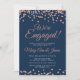 We're Engaged! Rose Gold Glitter Confetti Navy Invitation