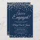 We're Engaged! Silver Glitter Confetti Navy Blue Invitation